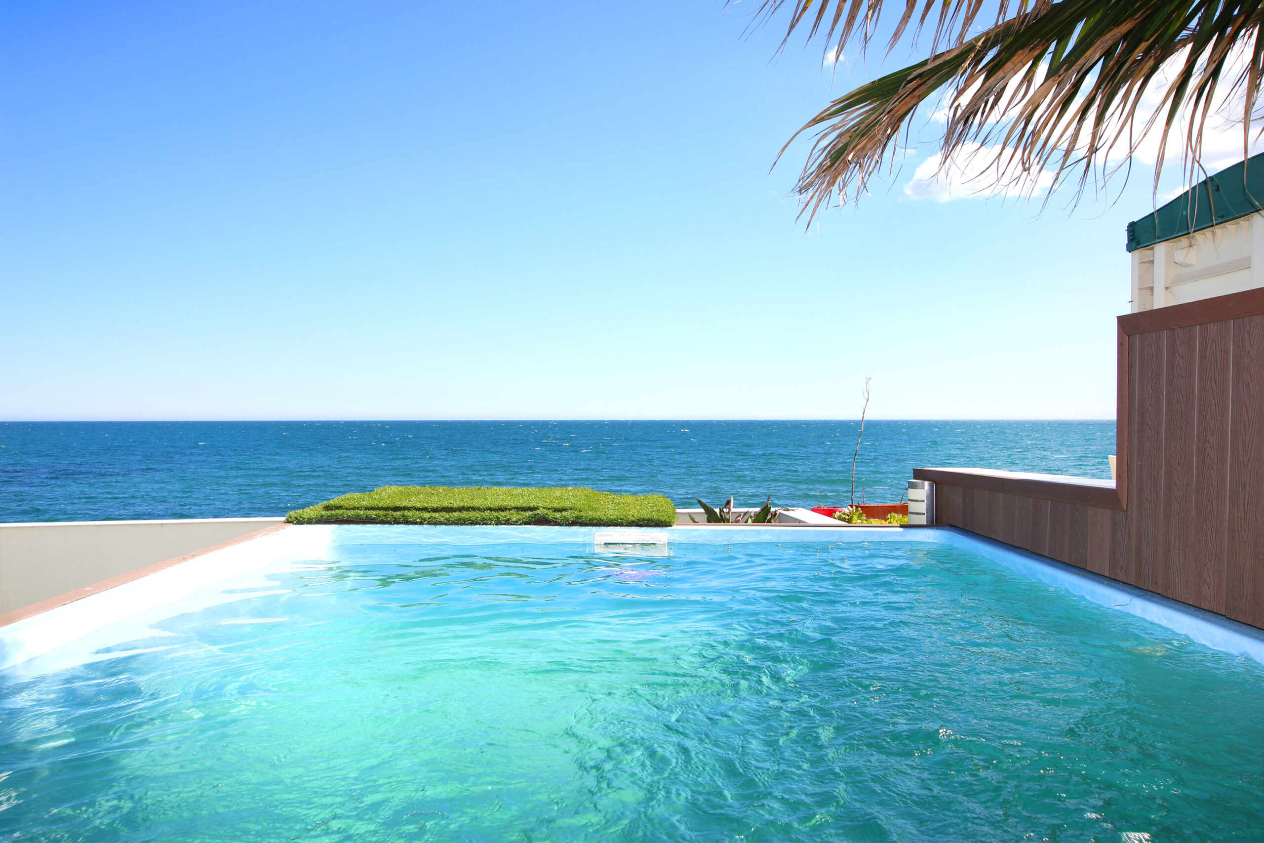 Frontline seafront garden featuring a private swimming pool (4.5 x 2.5 x 1.4 m) and uninterrupted panoramic views of the Mediterranean—just metres from the shoreline.
